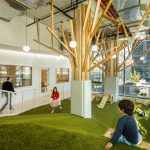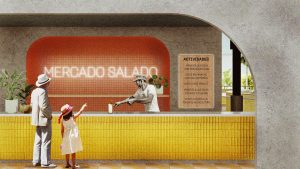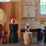 Las paredes se revisten con las pinceladas de Lang, tanto en concreto como en el canvas, los estantes exhiben vajillas que tienen su propia personalidad y las mesas invitan al espectador a sentarse y tomarse un café para sumergirse en uno de los libros que ofrecen.